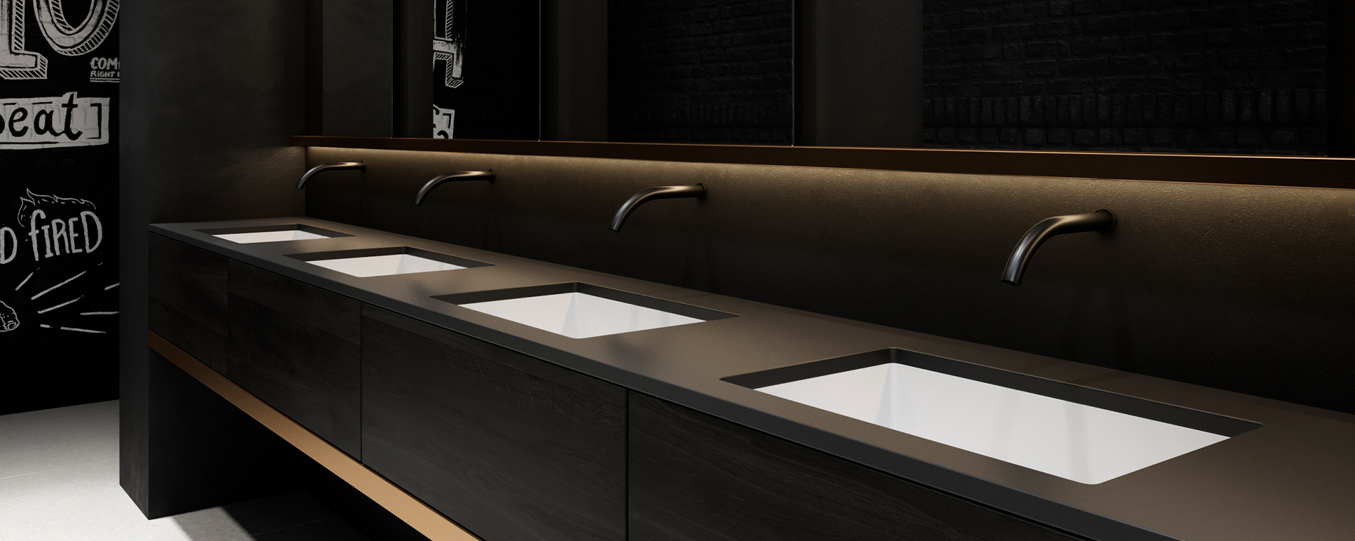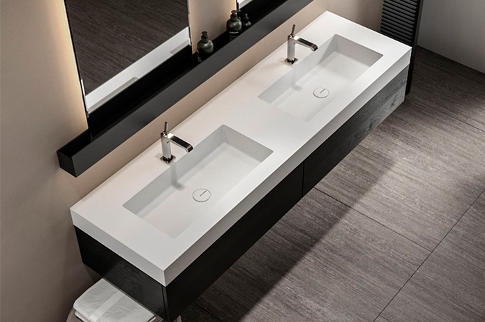 Потрясающие, приятные на ощупь столешницы с интегрированными умывальниками для вашего удобства с сохранением функциональности